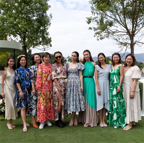 结果照片一看,不愧是她,在精心打扮的一圈美女里,唯有郭晶晶素面朝天,完全不 care现场阔太们的穿着规格,怎么随心怎么来。