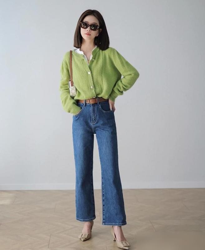 当然,除了常规的穿搭方式外,也可以来尝试一些更独特的穿搭方案,例如恰当地使用撞色搭配,通过色彩的碰撞去激发出你个人的时尚感,像浅绿色和亮黄色的撞色搭配就会让整个搭配呈现出更大胆的视觉效果,显白又具有冲击力。
