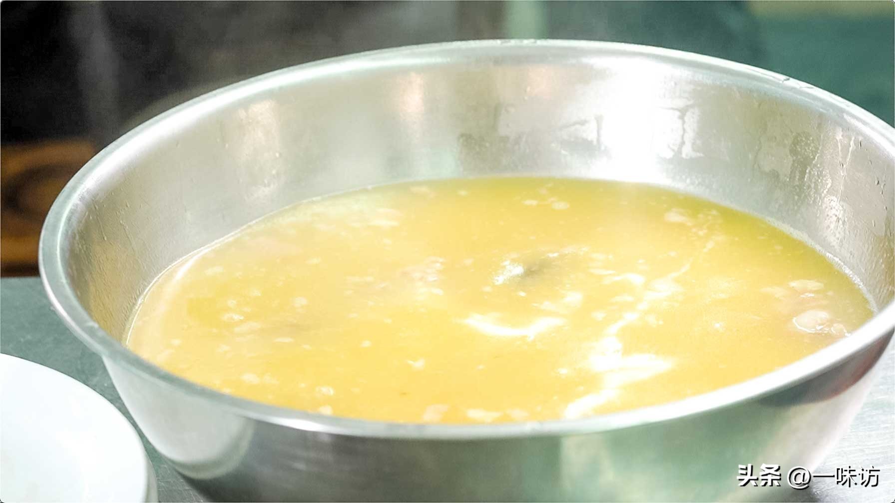 加入5000毫升的清水,大火烧开,小火炖煮8小时即可。捞出,过滤汤渣,这就是制作好的高汤。