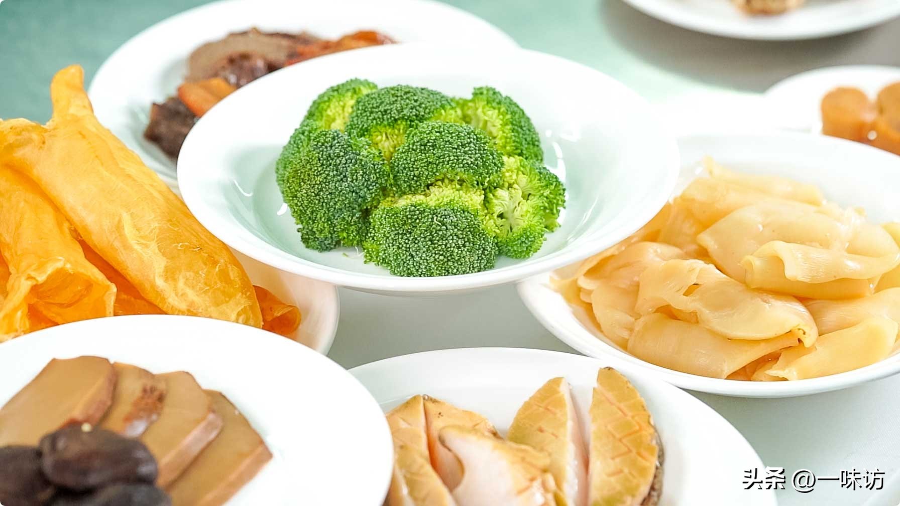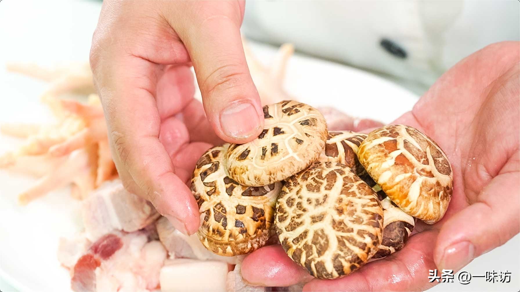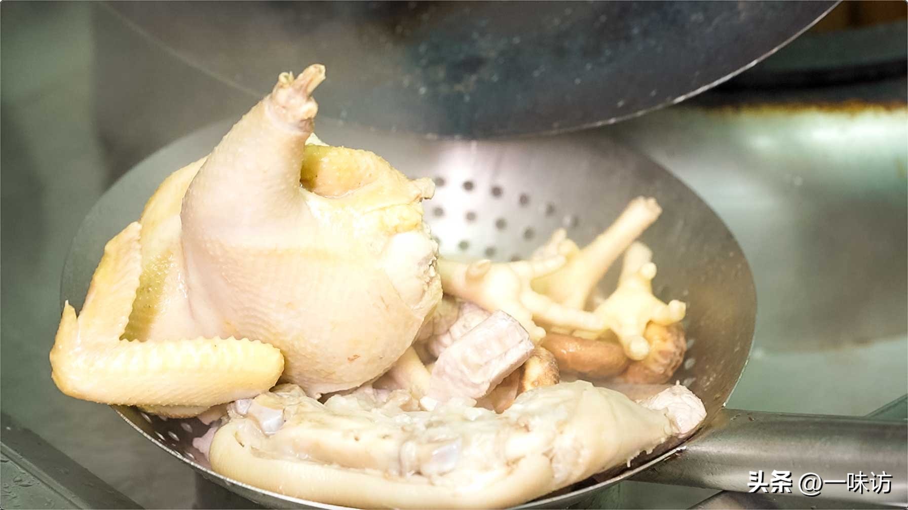 高汤食材:老母鸡一只1500克。老黄鸭一只1000克,猪手1000克,排骨1000克,猪后腿肉500克,鸡爪5000克,冬菇50克,金华火腿250克,陈皮10克,老姜50克,