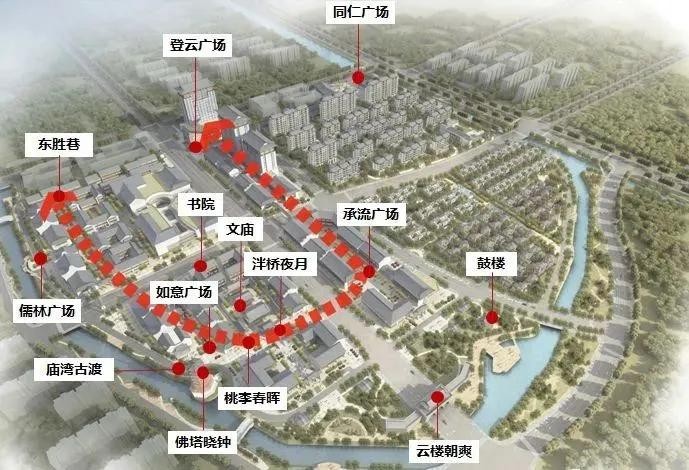 睢宁县历史文化街区商业区域面积8.1万平方米,分为古镇风韵区、文创商业区、大型商业区、文庙广场、民俗风情街。