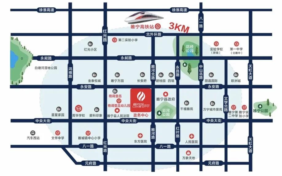 中硕·爱尚城位于濉河北路和永安路交汇处,涵盖精品零售、生活配套、亲子童趣、文化艺术、特色餐饮、高端休闲娱乐等是余个优质体验生态。