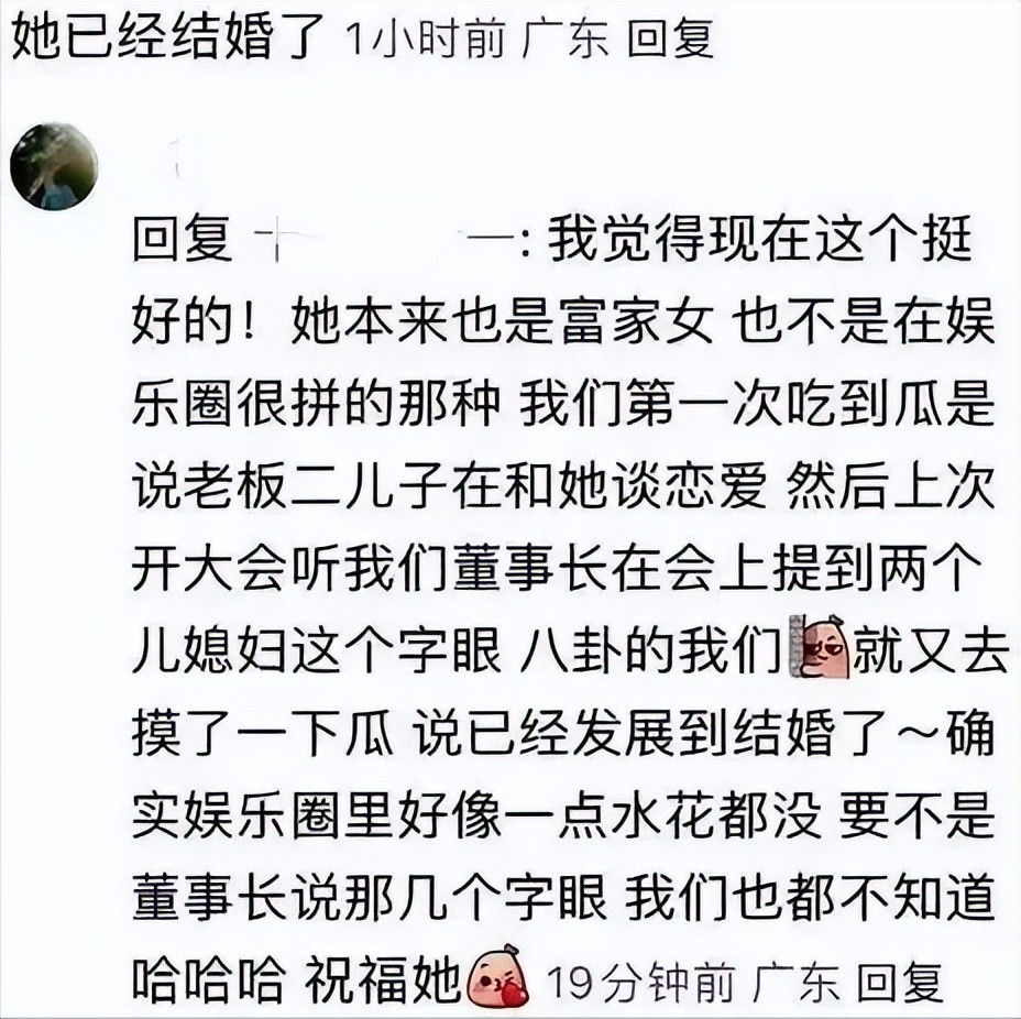 紧接着,就有鸿荣源集团(男方家族企业)内部员工出来说,乔欣是自家的二少奶奶,因为董事长在会议上提到有“两个儿媳妇”。