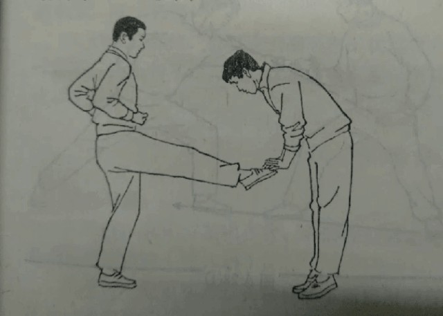 八 劈柴势(切掌击腿)
