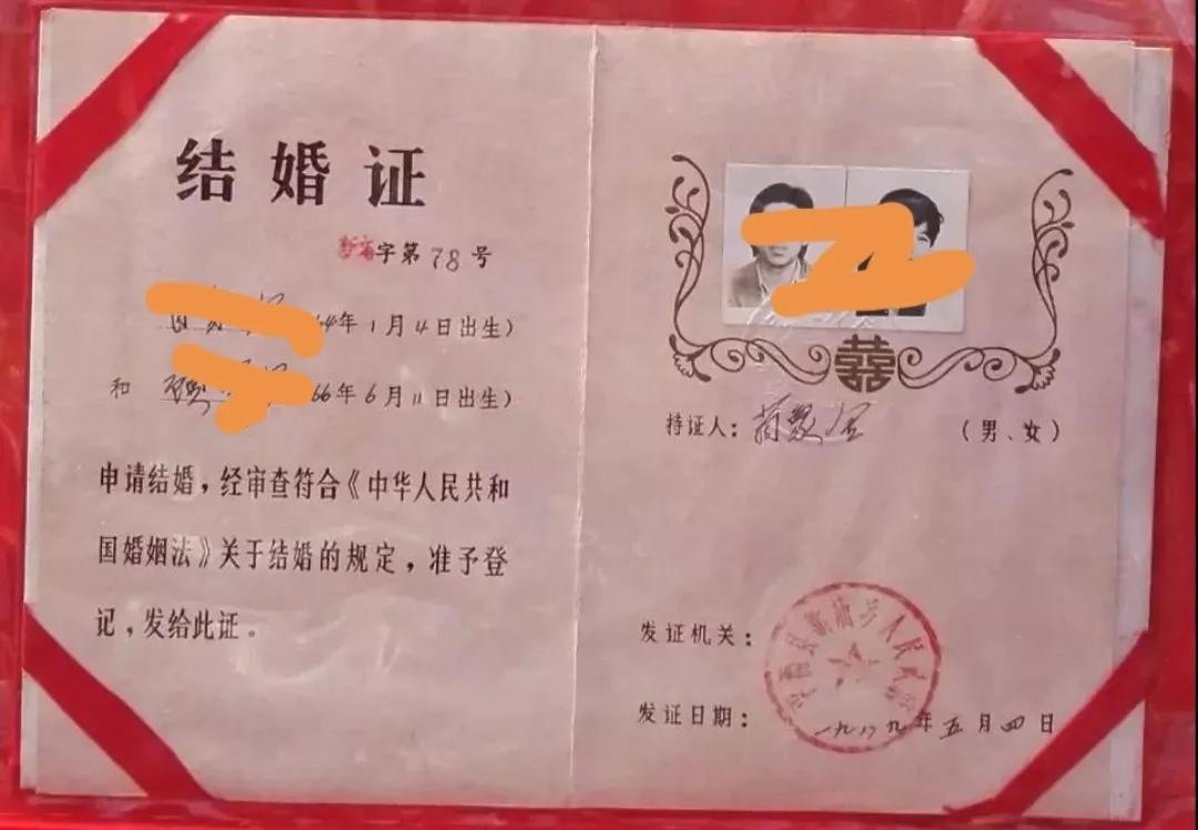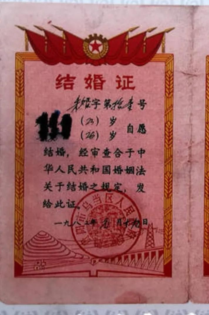我是八十年代结的婚,我的结婚证可以用“单调”两个字来概括,。一张比巴掌大不了多少又对折的红纸片,打开左半面,写着两人的名字年龄性别等信息 ,右边是发证机关印章和年月日,除此之外,什么东西都没有了,就连照片也没有。不是我们没有照片,是结婚证上没有贴照片的地方。至于吉祥喜庆的图案纹饰都没有,只有一帧城市楼房的剪影作为背景图点缀其上,看上去,呆板得很。
