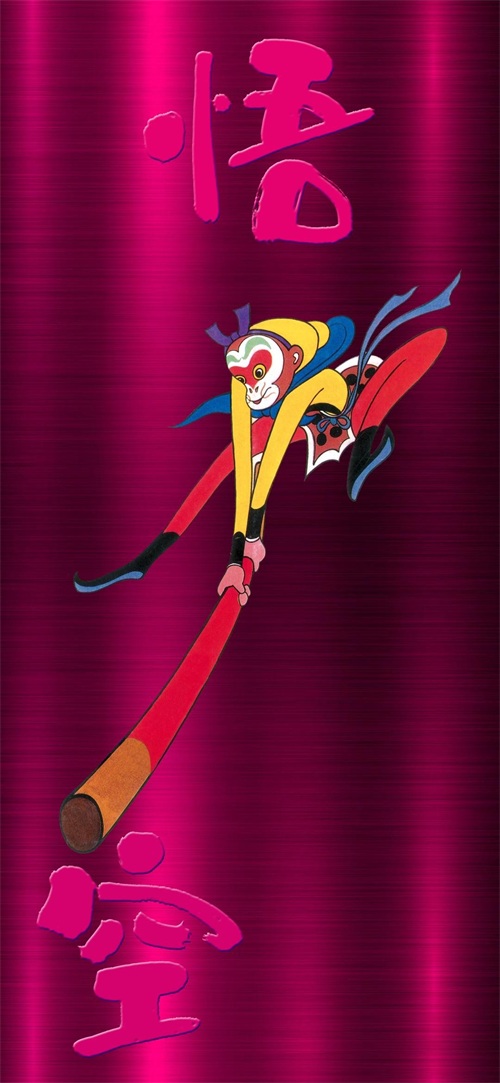 下面这张壁纸,背景是红色拉丝金属板。我在上方放置了“悟”字,下方放置了“空”字,既寓意悟空,同时也寓意“悟”,金箍棒打向“空”,寓意我们的红尘历练,其实都是“空”。