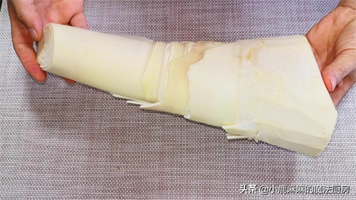 1、新鲜的竹笋用刀剥掉外皮后,只保留里面白色的笋肉。笋皮比较硬,操作的时候要小心。也可以在购买的时候让摊主帮忙,这样就省事很多。