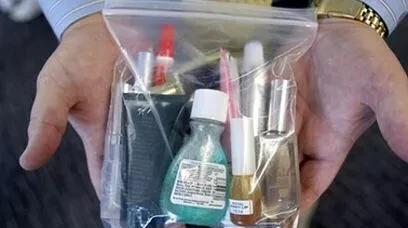 这里需要注意的,睫毛膏,唇蜜,啫喱,洗发水,牙膏,精华素等都属于液态,都要放置在这1000ml透明袋子里,确保能开口接受检查。