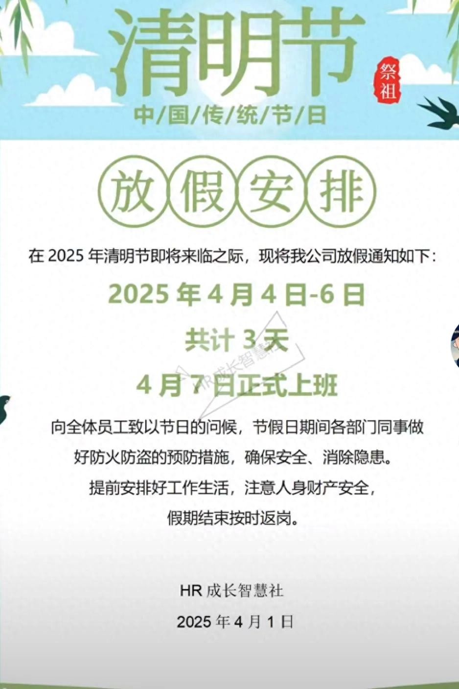 近日,#清明节放7天假#话题冲上热搜榜首,引发全网热议。不少网友晒出“2025年清明节放假7天”的截图,称“国务院最新通知调整假期”,但官方信息显示:2025年清明节实际放假3天,且不调休。