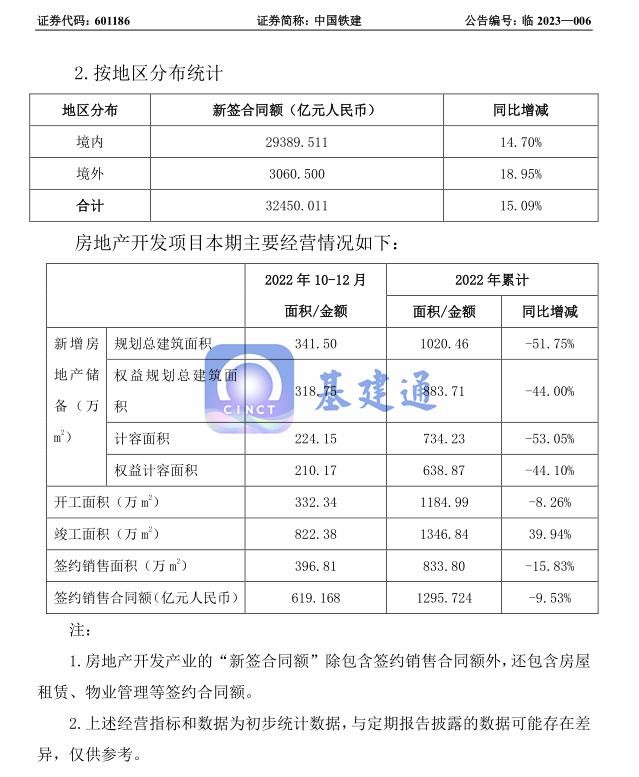 而中国铁建2022年全年累计新签合同额32450.011亿,同比增长15.09%,同样也突破了3万亿大关。