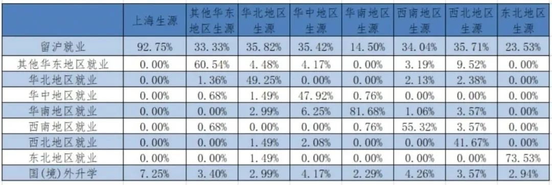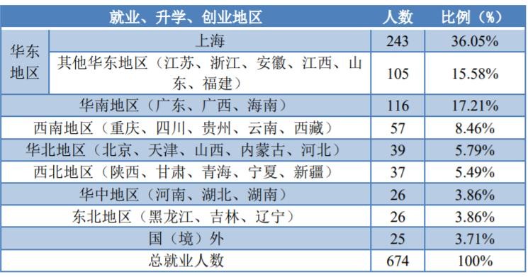 其中主要流向上海市,本科和硕士毕业生分别占比为 36.50%、32.43%。