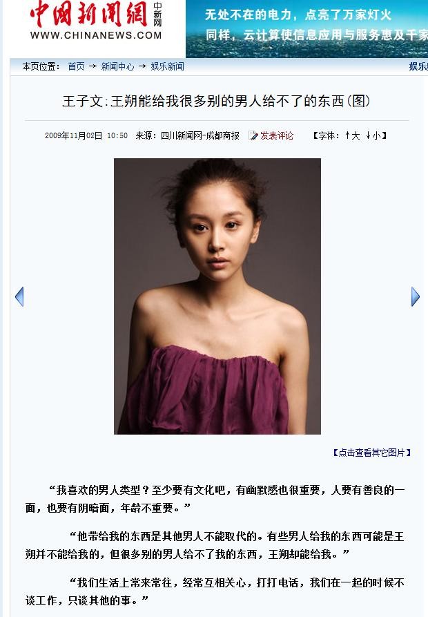 王子文:王朔能给我很多别的男人给不了的东西(图) 2009年11月02日 10:50 来源:四川新闻网-成都商报