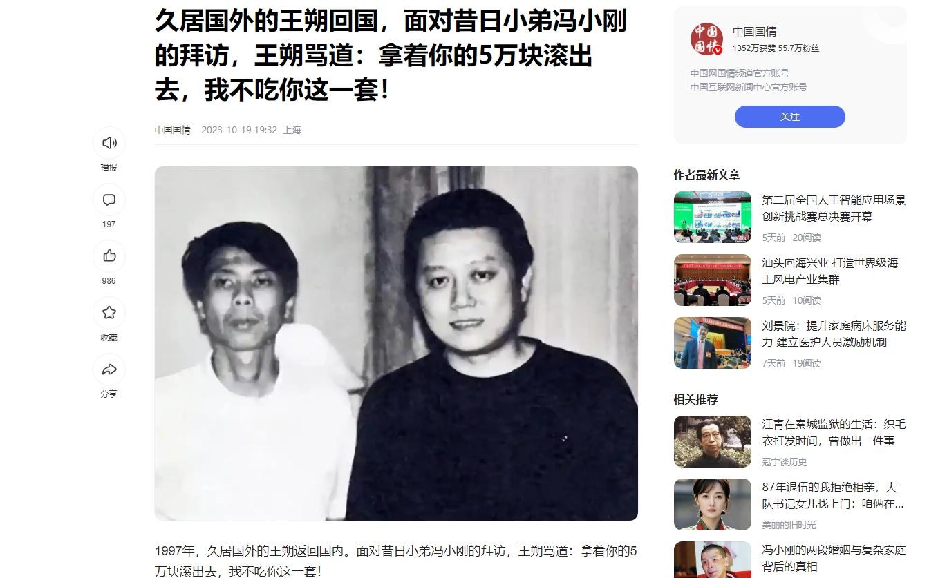 久居国外的王朔回国,面对昔日小弟冯小刚的拜访…… 中国国情 2023-10-19 19:32 上海