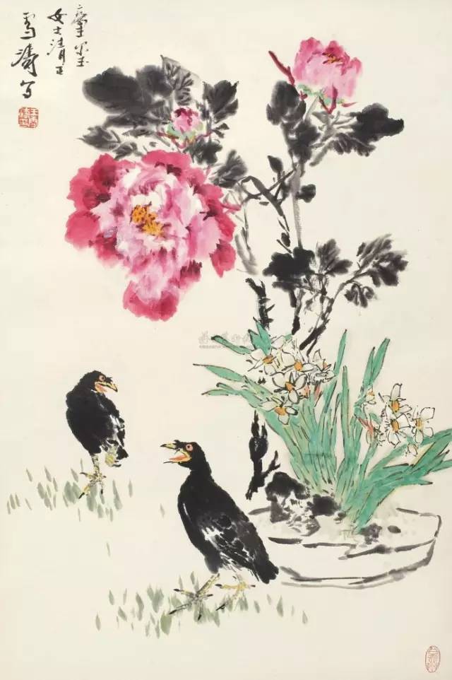 王雪涛(1903--1982),河北人,原名庭钧,字晓封,号迟园,中国现代著名小写意花鸟画家。
